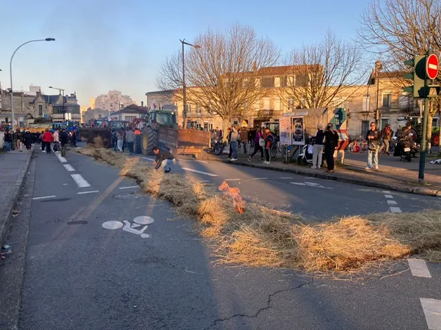 Les entrées et sorties de l'autoroute A62 à hauteur de La Réole sont toujours bloquées. Les usagers doivent entrer ou sortir de l'autoroute quelques kilomètres plus loin. Une cinquantaine d'agriculteurs sont mobilisés sur place et se relaient depuis mercredi matin. Ils ont dormi sur place dans la nuit de mercredi à jeudi.