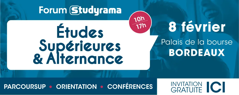 Les forums Studyrama des Etudes Supérieures & de l’Alternance, des Masters et des Formations du Numérique de Bordeaux vous donne rendez-vous au Palais de la Bourse, le samedi 8 février, pour préparer votre futur !
